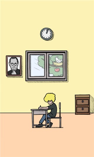 5、第 5 关:先捡右侧拖把,靠在墙上照片处变成棍子,等前方同学伸头偷看时点击棍子击打即可。