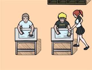 2、第 2 关:紧盯前方同学,在他把纸条丢给后方同学的瞬间点击纸条,打落即可通关。