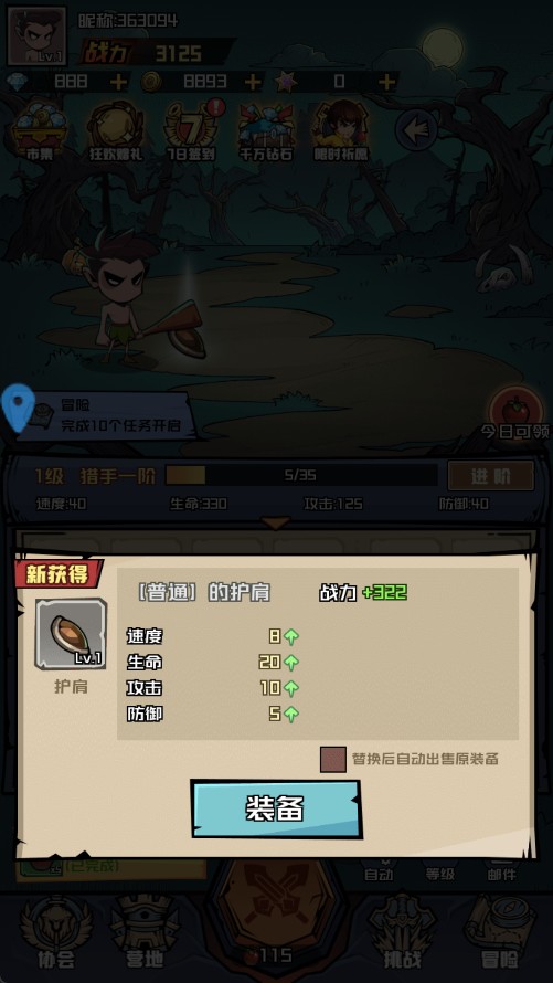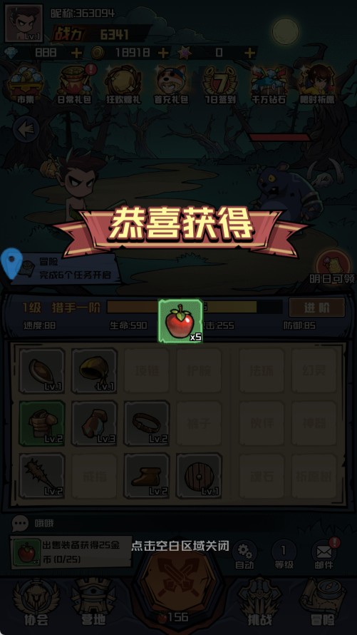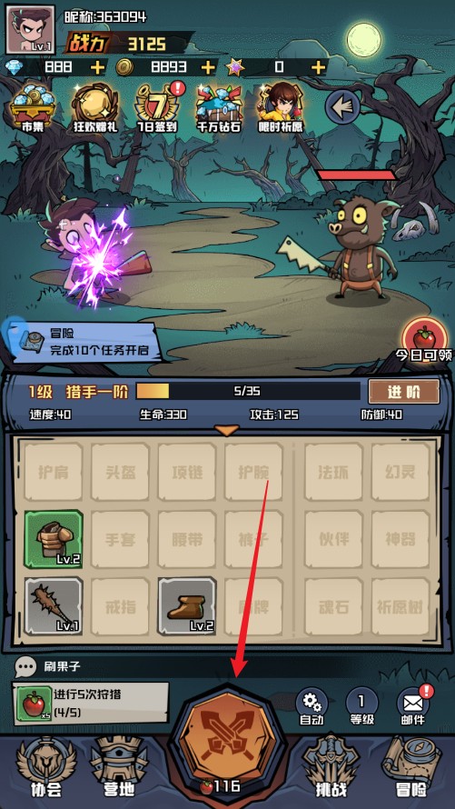 6、完成每日任务可获经验,等级提升后会开启 “挑战” 高收益副本,副本掉落顶级装备与神器,是提升战力的关键途径。