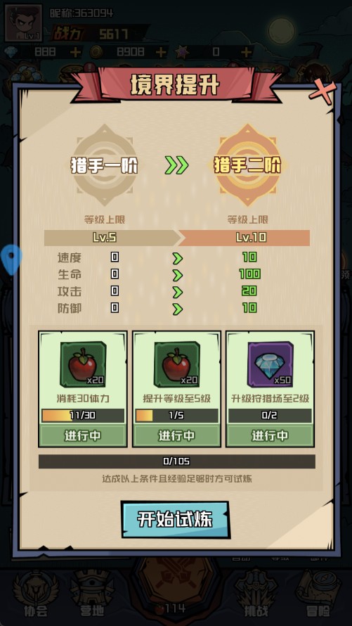 4、角色实力达标后,将解锁 “进阶试炼” 玩法,挑战该高难度关卡,能获取丰厚奖励与稀有道具。