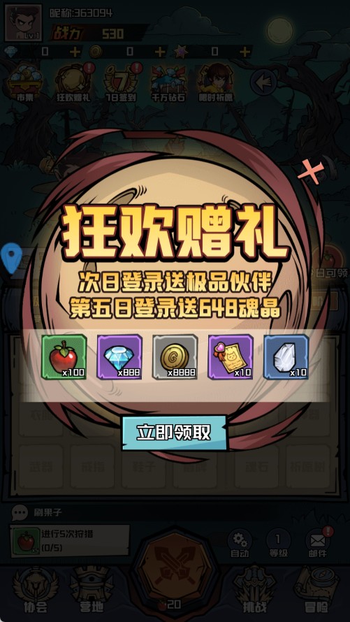 1、玩家首次登录炼金国度,可直接领取超值新手礼包,礼包内包含多种丰富奖励,助力初期游戏进程。