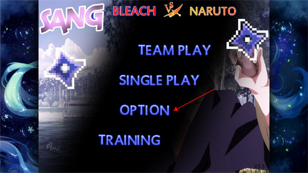 1、进入死神vs火影雨兮改经典版主界面,找到并点击 “Option” 选项,进入全局设置菜单。