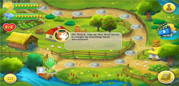 4、游戏中有许多关卡等待玩家去完成。不同的关卡有不同的挑战。一步一步完成关卡,管理你自己的农场。