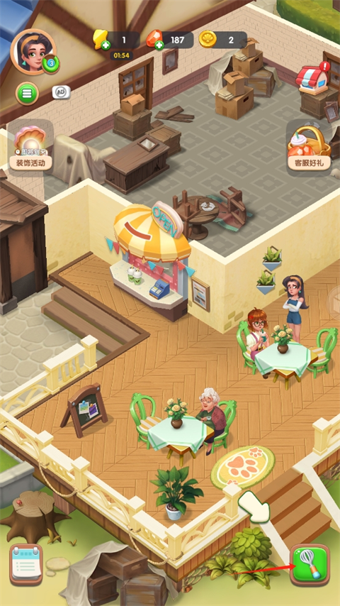 2、通过简单的操作,合成各种美食,满足顾客的口味,提升餐厅的档次,体验成长的喜悦。