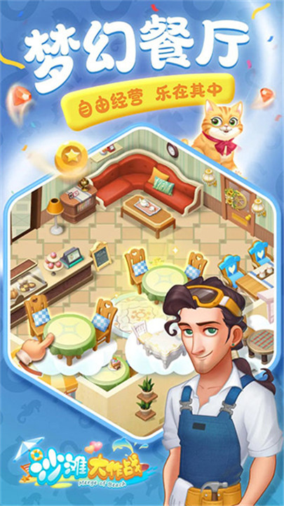 沙滩大作战是一款极具创意的管理类游戏。它还整合了三消游戏玩法,大大提高了游戏的可玩性。在这里,玩家需要在这个神秘的海滩下创建一个梦幻般的餐厅。他们可以通过改造海岸和升级设施来吸引游客。他们还可以探索海滩,收集一些有趣的东西来丰富他们的餐厅。游戏采用简单的淘汰制玩法。客户可以通过完成淘汰来通过这个关卡。欢迎下载。