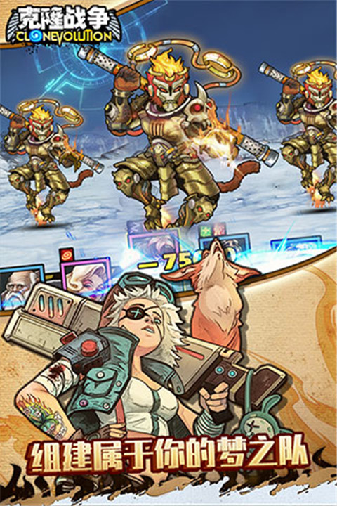 克隆战争是一款风靡海外的美国硬核卡牌手游。游戏设定在一个后世界末日的荒地,呈现各种独特和有趣的艺术风格,整合酷的技术技能,并带领玩家进入一个独特的克隆世界!在游戏中,玩家将克隆历史上的各种著名人物来支持他们,如凯撒大帝、伊丽莎白女王、德古拉、李小龙等。这些时空错位的克隆英雄将并肩作战!游戏以多种培养玩法为特色,为玩家创造独特的英雄属性。