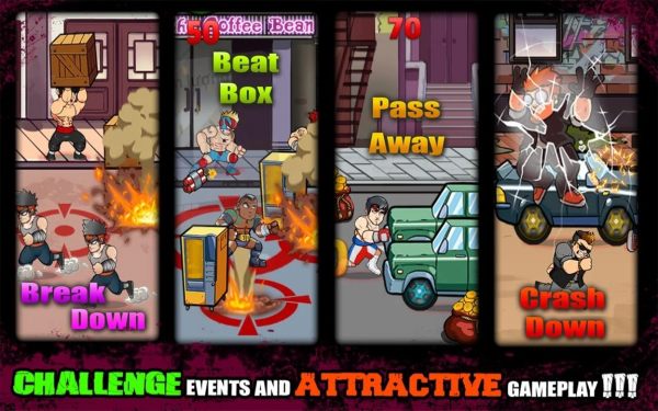 1、游戏操作简单。小心那些流氓的突然袭击。你击倒的流氓越多,你的分数就会越高。游戏玩法非常丰富。