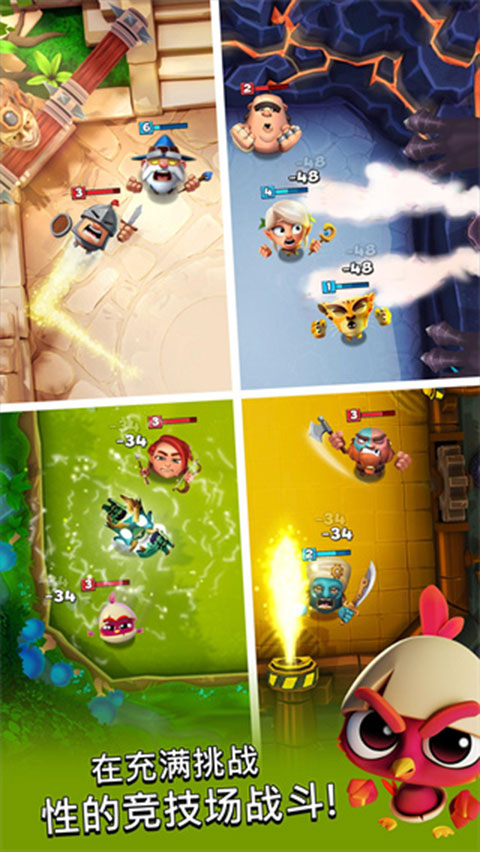 粉碎四人组是一款卡通风格的多人战斗策略休闲手机游戏。游戏中的角色将以卡通形式呈现给玩家。每个角色都有自己独特的风格。你可以自由选择各种字符。因为这是通过网络连接随机匹配玩家进行战斗,所以你可以在竞技场上挑战来自全国各地的人。”打败别人也能让你获得大量金币。同时,在游戏中,你可以收集卡片来解锁新角色。升级你的角色将释放他们强大的能力,在竞技场上粉碎你的对手,并一路前进到最高位置,以证明你的价值并获得特殊奖励。
