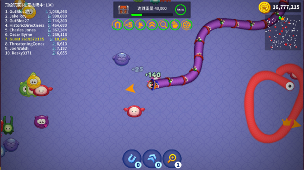3、通过吞食食物或对手,你可以不断增加蛇的身体长度。排名在右上角实时更新,鼓励你不断突破自我,争取更高的排名。