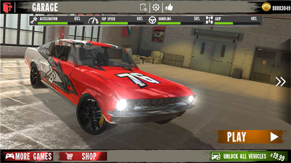 2、在卡通风格的画面中,玩家可以选择各种级别的赛车。顶级赛车并不一定是最坚固的。