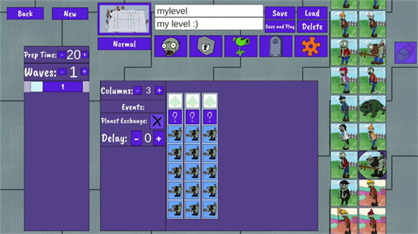 3、自制关卡编辑器允许玩家自由组合场景元素、僵尸类型和难度参数,以支持创造性关卡部分。