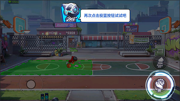 3、点击投篮按钮即可进行投篮操作,尝试准确瞄准篮筐。