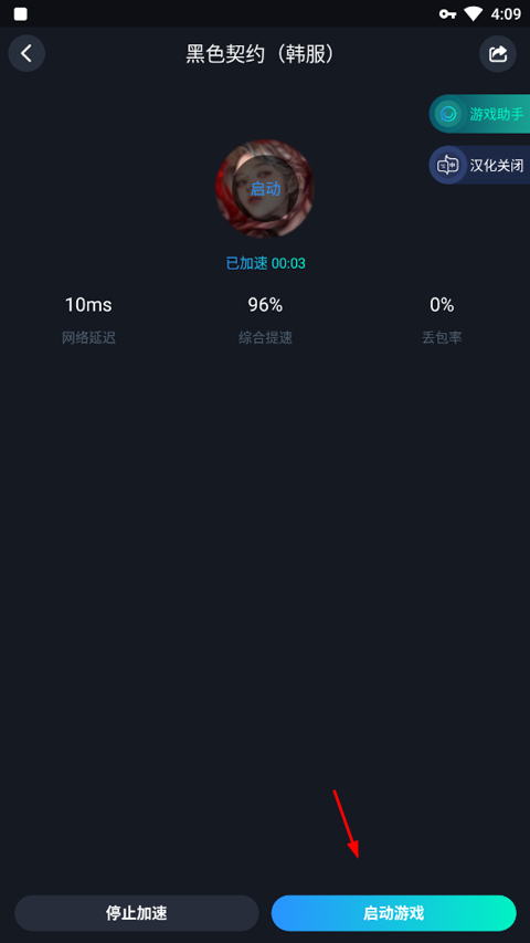 2、加速完成后,点击下方的“启动游戏”按钮,进入游戏界面。
