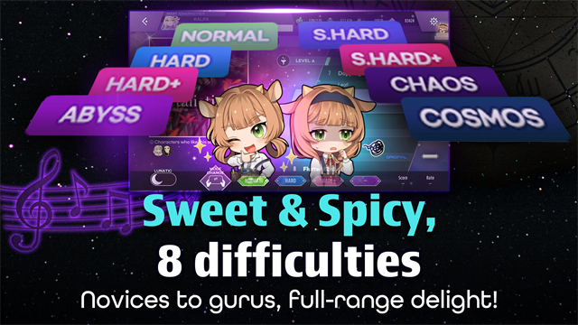 KALPA是一款有趣的手机游戏,结合了古典和现代的音乐风格,提供了丰富多样的游戏体验。在KALPA游戏中,玩家需要根据音乐的节奏点击屏幕上的音符。不同的赛道有着独特的难度等级,精准的操作判断和强烈的挑战感。KALPA音乐游戏不仅考验玩家的手速和反应能力,还提供了q版的偶像人物培养系统。每个角色都设计得很精致,很可爱。玩家可以自由组合偶像的风格,享受眼睛和耳朵的双重盛宴,带来极致的娱乐体验。
