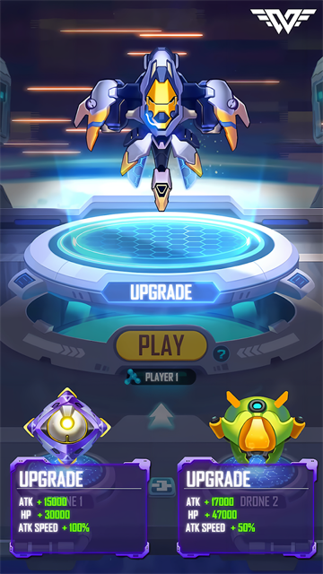 2、在战斗之前,你一定要记得把你的战斗机升级到一定程度,它的伤害可以迅速消灭关卡中的敌人。