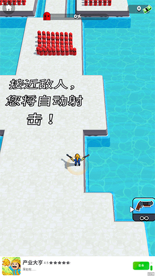 2、靠近敌人时,角色会自动进入射击状态进行攻击。