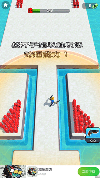 3、你消灭的橡胶小人越多,你获得的游戏奖励就越多。尽可能多地消除。