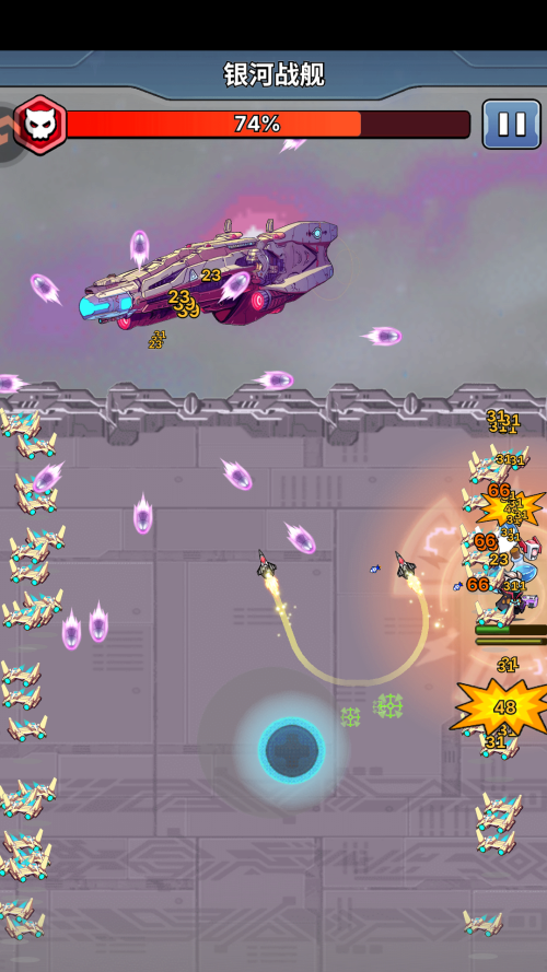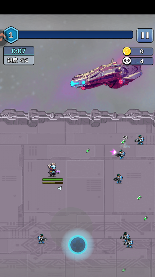 1、打开星海幸存者最新版本,通过指尖操作控制角色上下左右移动,遇到怪物时会自动攻击,同时在移动过程中收集能量。
