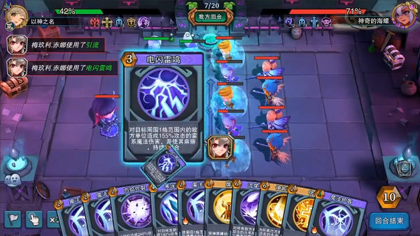 1、进入战斗后,系统会随机分发各式各样的卡牌,玩家可以使用这些卡牌技能来进行作战。