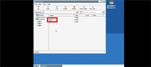 4、运行容器后,会进入一个类似电脑桌面的界面,此时需要点击【D盘】进入磁盘目录。