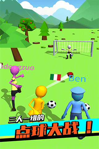 3、你将在同一个舞台上与另外两名玩家竞争,并在充满障碍的球门前得分。