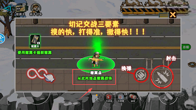 特别要留意画面中央绿色光圈的撤离点,熟悉右侧的射击和换弹操作按钮,确保顺畅的游戏体验。