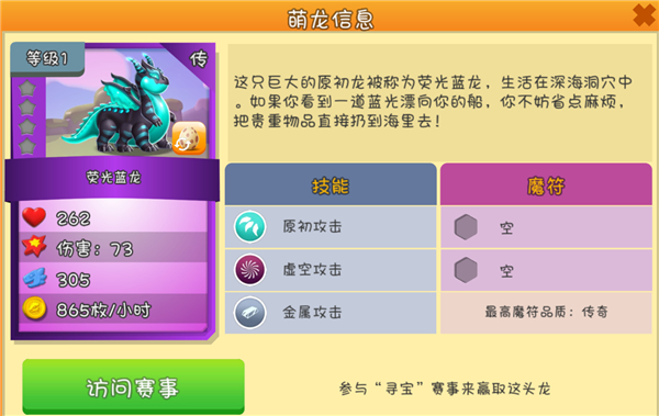 4、带领你的龙队称霸海岛,参与更多战斗,扩大可爱龙的收藏和提升技能,努力向更高的联赛冲刺。