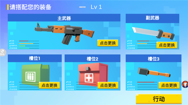 3、根据战斗需求自由搭配武器装备,确认选择无误后,点击 行动 按钮开始战斗。