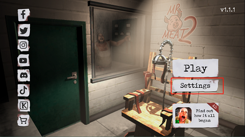 1、进入屠夫先生2游戏的主界面后,点击界面上的【settings】按钮进入设置菜单。