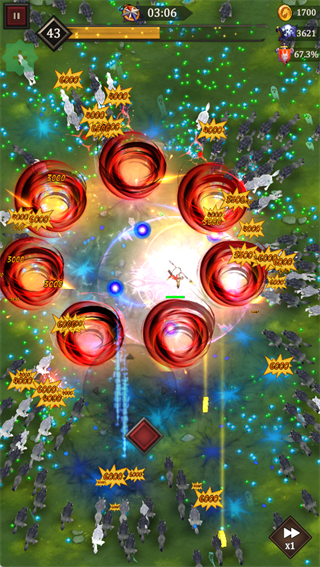 通过滑动屏幕即可移动角色,所有技能会自动释放,形成范围伤害。在面对大量敌人时,需要灵活利用技能覆盖范围和走位策略高效清场,同时及时收集怪物掉落的各种资源。