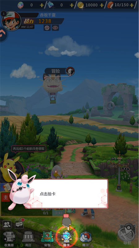 1、打开游戏后,首先进行抽卡,为自己的冒险准备强力宝可梦。
