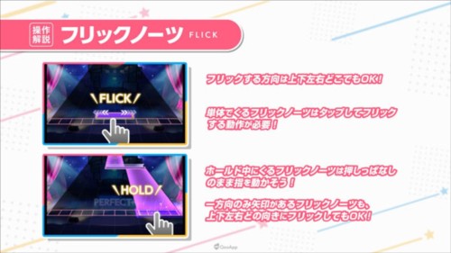 在World Dai Star的节奏游戏中,有一种紫色的FLICK音符,玩家需要根据音符的滑动方向进行操作。