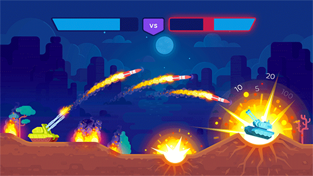 3、游戏采用活泼的卡通风格画面,操作设计直观灵活。玩家可以轻松控制坦克移动和瞄准,还可以结合场景中随机出现的道具制定多种进攻策略。