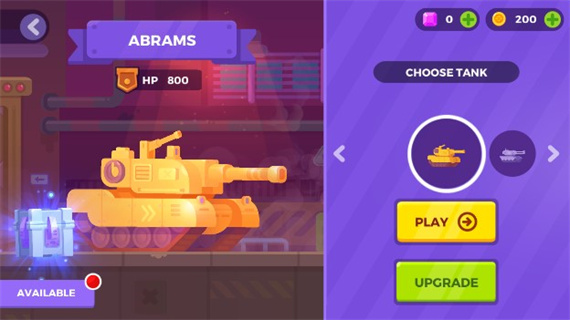 选定好游戏模式后,点击界面上的“UPGRADE”按钮。这是你为坦克升级和选择装备的步骤,可以根据自己的需求来提升坦克的能力,准备迎接战斗。