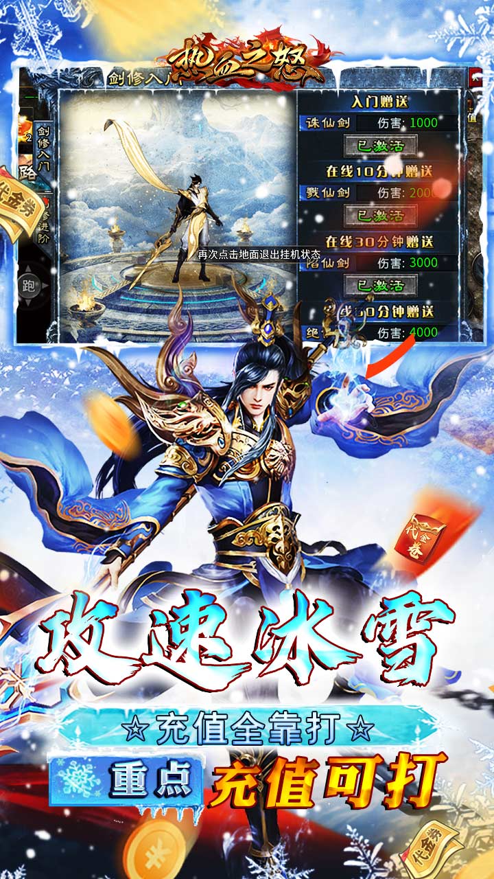 2.上线送:自动回收、自动拾取、施毒术、逐日剑法、开天斩!