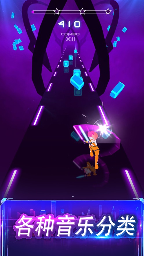 3、玩家需要注意挑战中的音乐节奏,不要错过任何方块,简单的手指操作让玩家获得更多乐趣。