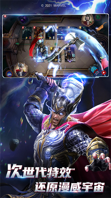 1、漫威对决3D卡牌战,游戏动画特效也很炫酷,给玩家带来超豪华的视觉盛宴。
