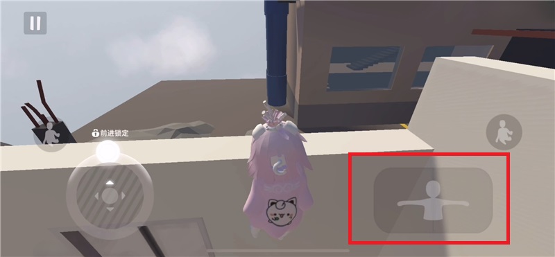 1、首先需要将双手举高,同时按住左边的方向按钮保持向前移动。