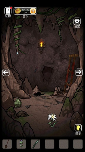 1、按照提示进入山洞,点击墙上的火把架,将火把放上去点亮洞内环境。