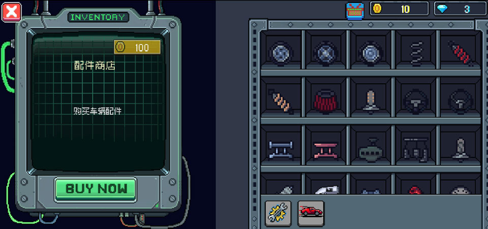 3、像素的画面风格会给你不一样的赛车体验,每一场比赛都会让你体验到最好的赛车过程。
