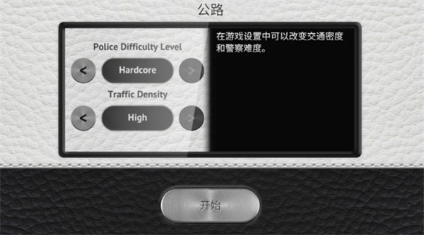 4、选好模式和车辆后,设置交通密度以及警察的难度等级,为驾驶挑战做好准备。