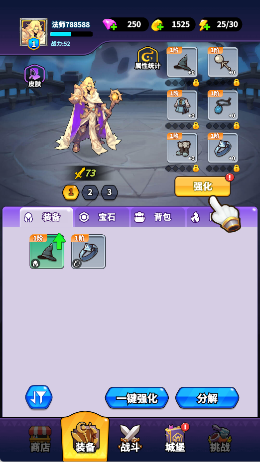 6、战斗结束后进入装备界面,点击“强化”提升装备等级,能够直观增强战力,为迎接更高难度的关卡做好准备。