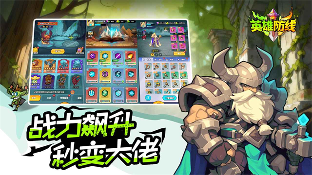 1、英雄防线怪海攻击带来强烈的压迫感,技能瞬间清屏满屏数爆,实现了减压和成就感的双重满足。