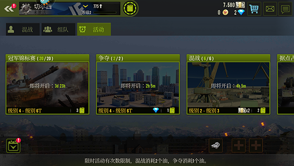 1、通过完成目标,消灭敌人,赚取奖励,攀升联赛排名,在战场上实施制胜战略,获得更大更强的装备。