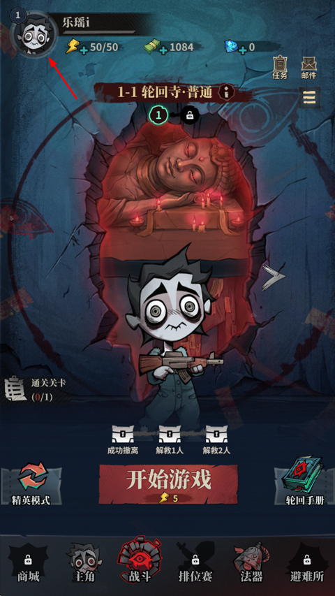 1、进入游戏后,点击界面左上角的个人头像进入设置或兑换页面;