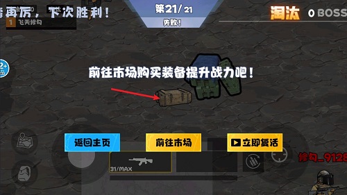 4、如果不幸被击杀,你会变成一个盒子状态,此时可以选择复活继续游戏,或者重新开始新的挑战。