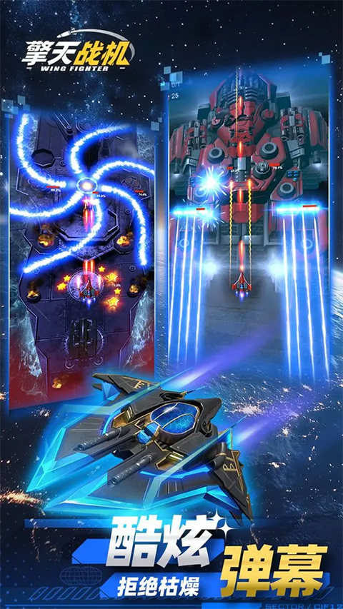 4、游戏采用硬科幻的艺术风格,构建了丰富多变的陆海空一体化战场,以刺激的战斗音效和华丽酷炫的弹幕特效,全方位打造震撼、身临其境的飞行射击体验。