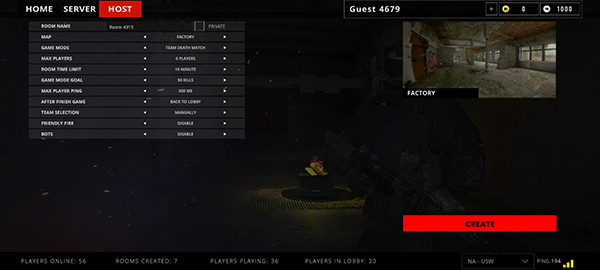 1、在羊托游下载安装好代号真实正版后,进入游戏,点击主界面的“Host”按钮开始创建房间。