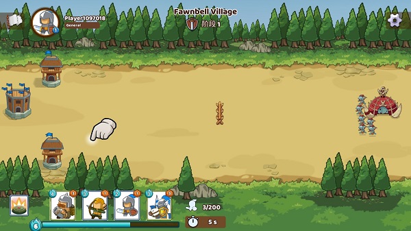 随着游戏进展,玩家还可以解锁更多兵种。放置兵种时,只要满足能量条件,将屏幕上的兵种拖动到战场上即可;