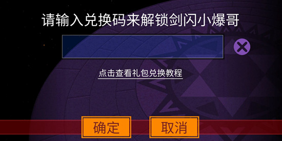 点击后会弹出下方的兑换框,将在爆米花商店获得的剑闪小爆哥兑换码输入进去,就可以成功解锁剑闪小爆哥角色!